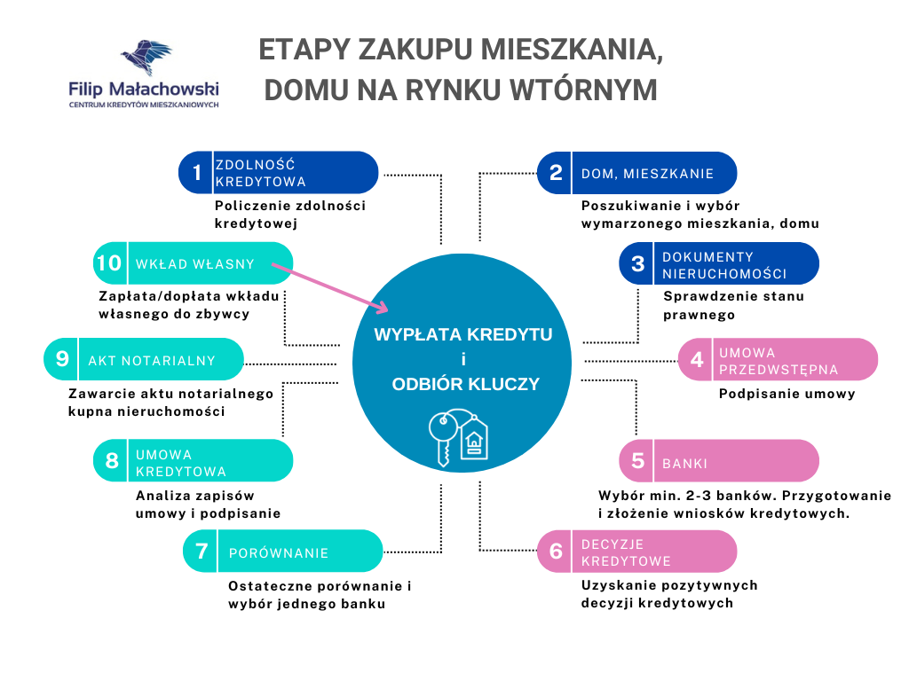 INFOGRAFIKA ⇒ Kredyt hipoteczny – etapy zakupu mieszkania, domu na rynku wtórnym